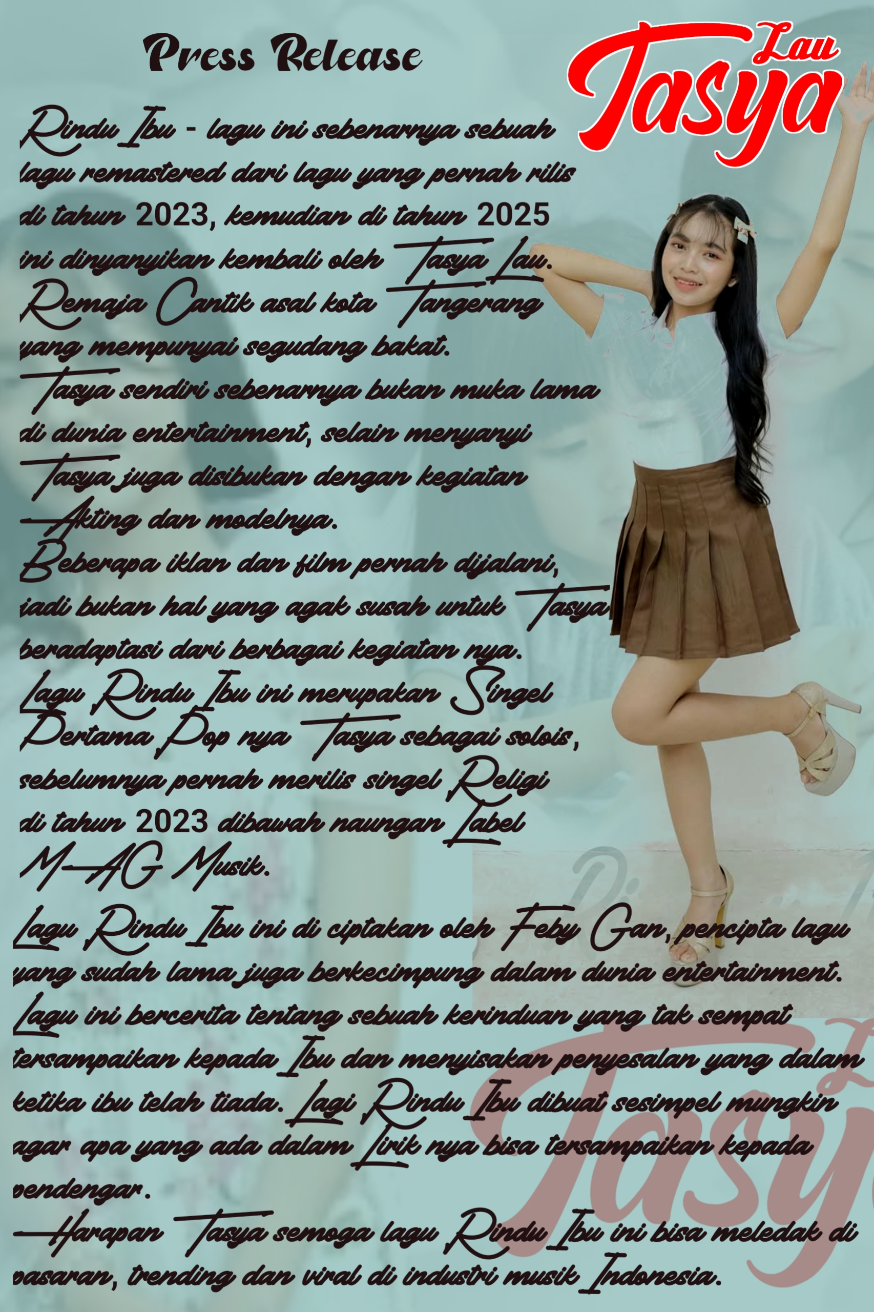 Singel "Rindu Ibu" ini adalah singel kedua untuk rilisan umum Tasya, tapi menjadi singel pertama dalam bersolo karier.